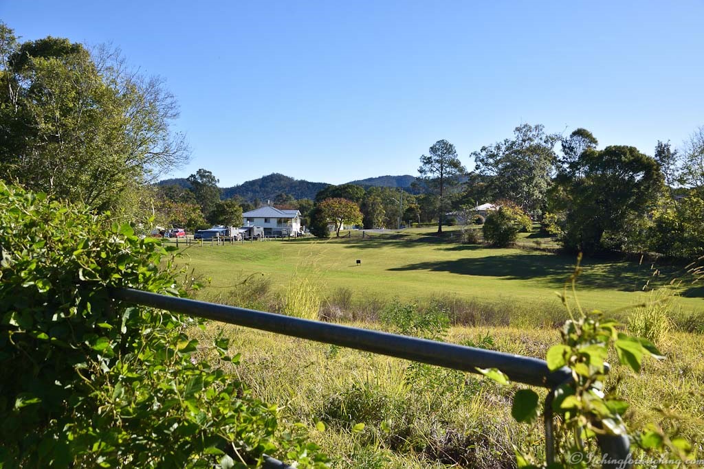 The park is less than a quarter full this morning and those who are staying are chatting in the sun. Magpies and butcher birds hop about. The trees here are a picture and I’m curious about one that appears to be covered in dead brown flowers. On closer inspection it’s a Golden Rain Tree like the ones we saw in Gunnedah but at a later stage as the flowers are brown and falling.