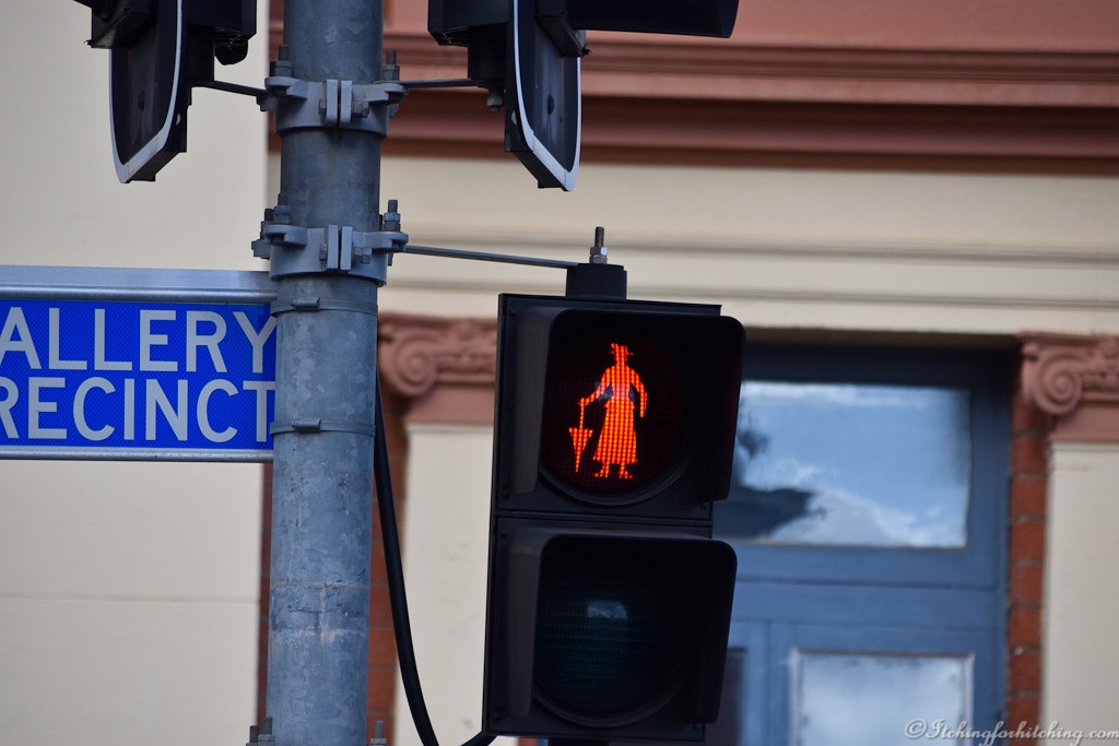 While Woody walks the town we girls zoom about in the car and every so often there he is, pounding the pavement down side streets and alleys, it’s like ‘Where’s Wally?’. We visit the wharf and historic buildings. The bank that was home to author Pam Travers when her father was the manager is now known as Story Bank and is dedicated to Mary Poppins. Even the traffic walk lights are Mary Poppins themed.