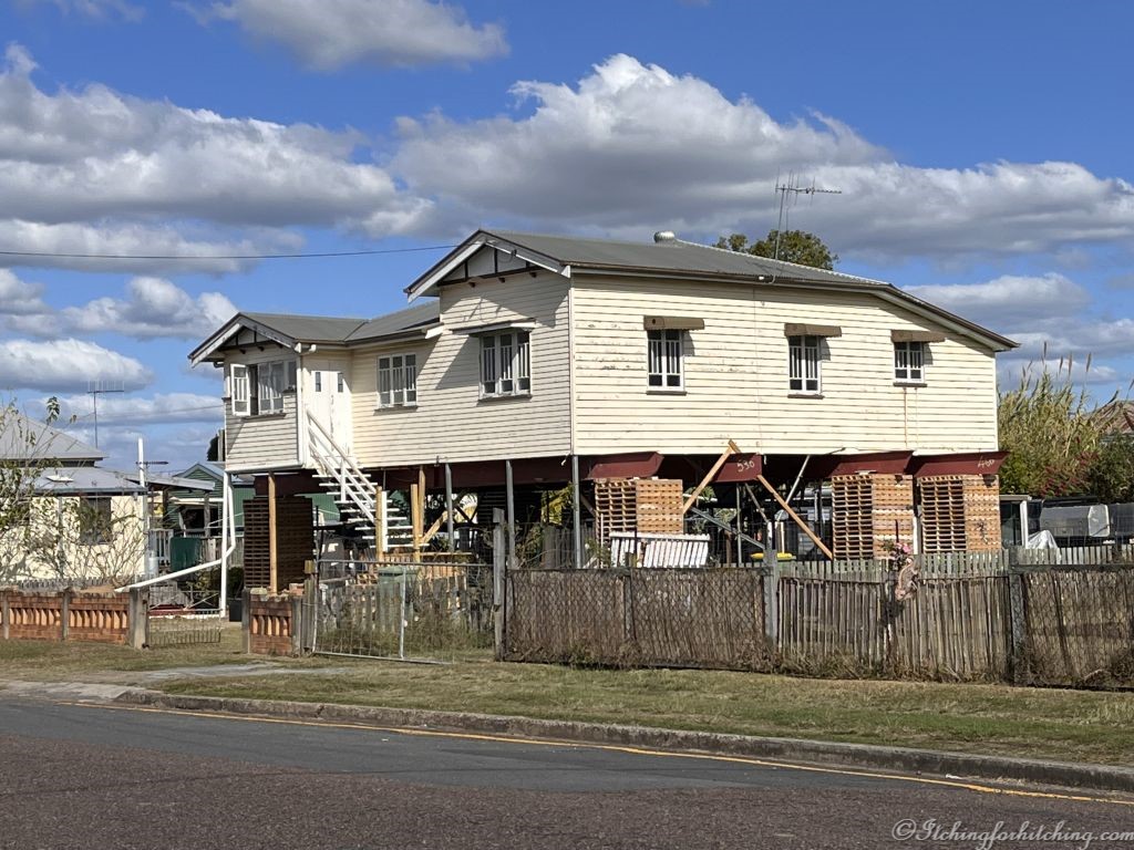 After lunch we drive into Maryborough so Woody can have a walk and we girls can do a little touring of the historic part of town. On a back street, we notice a house that is sitting high on wooden pallets. This is not an unusual sight in Queensland and it means that either the house has been moved from somewhere else or it is in the process of being raised higher to avoid future flood damage. Chances are it is the latter as Maryborough recently suffered serious flooding.
