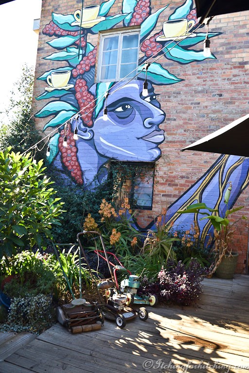 We have an interminably slow coffee in the colourful garden of Insane Coffee, surrounded by lawnmowers, baths, sewing machines, even a blowtorch. Coffee finished and it’s time to bid safe travels to VeeWee and Nic as they’re turning west to Biggenden for a few days before going home.