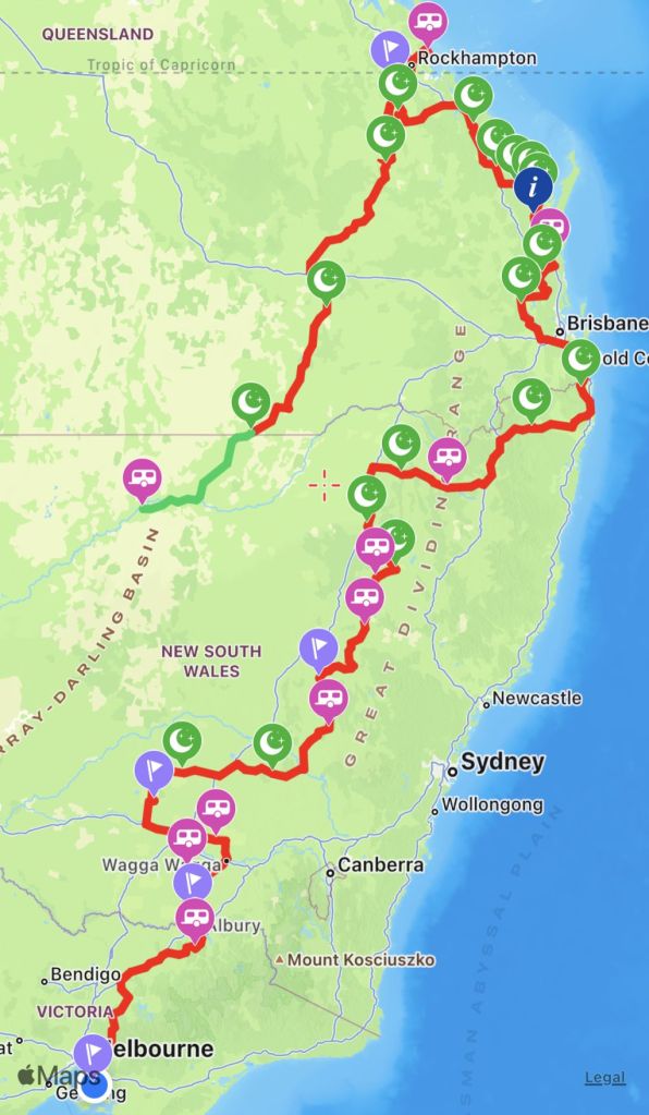 At Brewarrina we pick up the Kamilaroi Highway and cruise into Bourke. We want to get fuel before getting settled but 3 servo’s are shuttered, unmanned and credit card only. By the time we find a staffed one we are exasperated. When Google maps tells us that the caravan park is to our right, I assume I’ve been turned around with all the chasing around to find fuel. Still, it doesn’t feel right. When it drops us on a vacant corner and declares that we’ve arrived we know we’ve been led astray. Elle gets us back on track with Apple Maps.