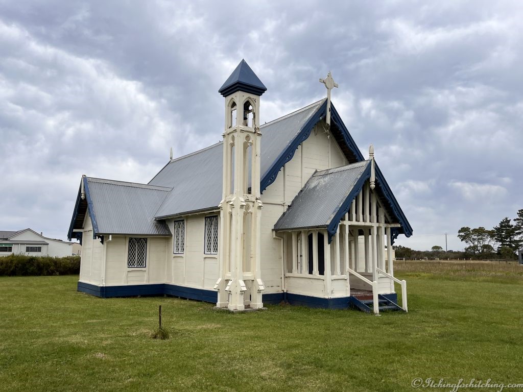 We take a quick detour into Tarraville to see Gippsland’s oldest church. Painted blue and white and of timber construction it was built in 1856 in the Gothic Revival style it is well worth the detour.