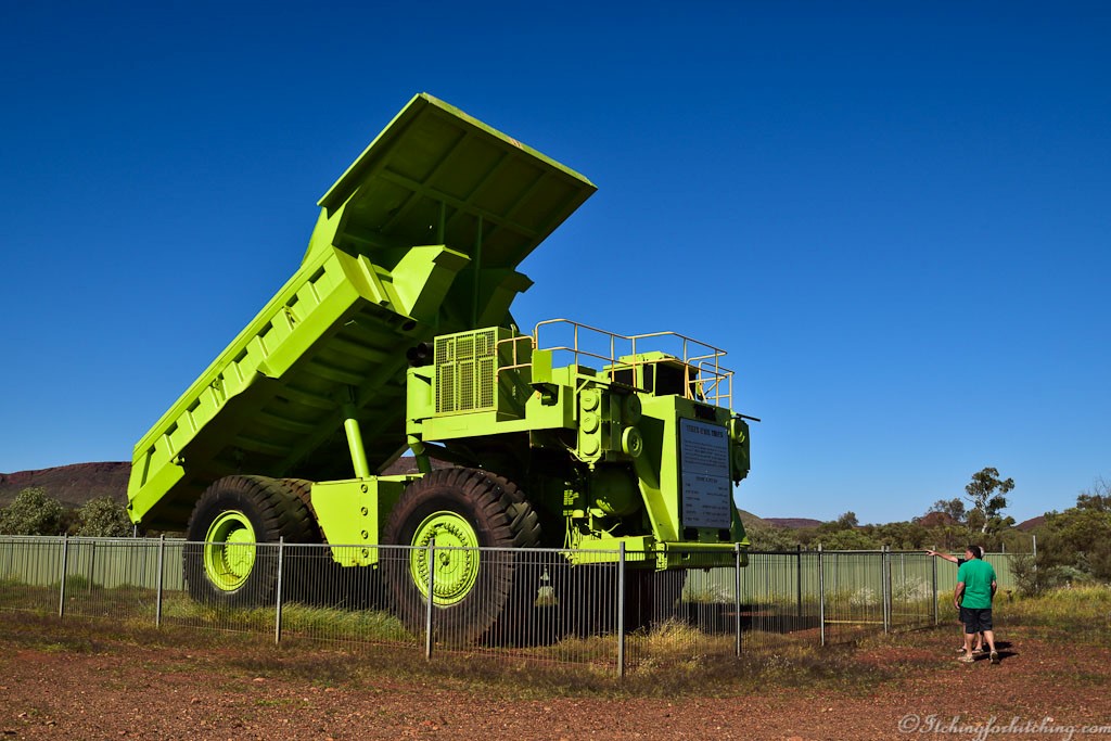 We thought it strange that the town was now referred to as Tom Price, until we took the mine tour. We quickly learnt that the mountain was now a hole! They’re still digging and according to Wikipedia, Tom Price is producing 28 million tonnes of iron ore per year. Tom Price is only one of many mines in the Pilbara region. That red dirt is more than just a pretty colour and even the corellas are pink with iron ore dust.