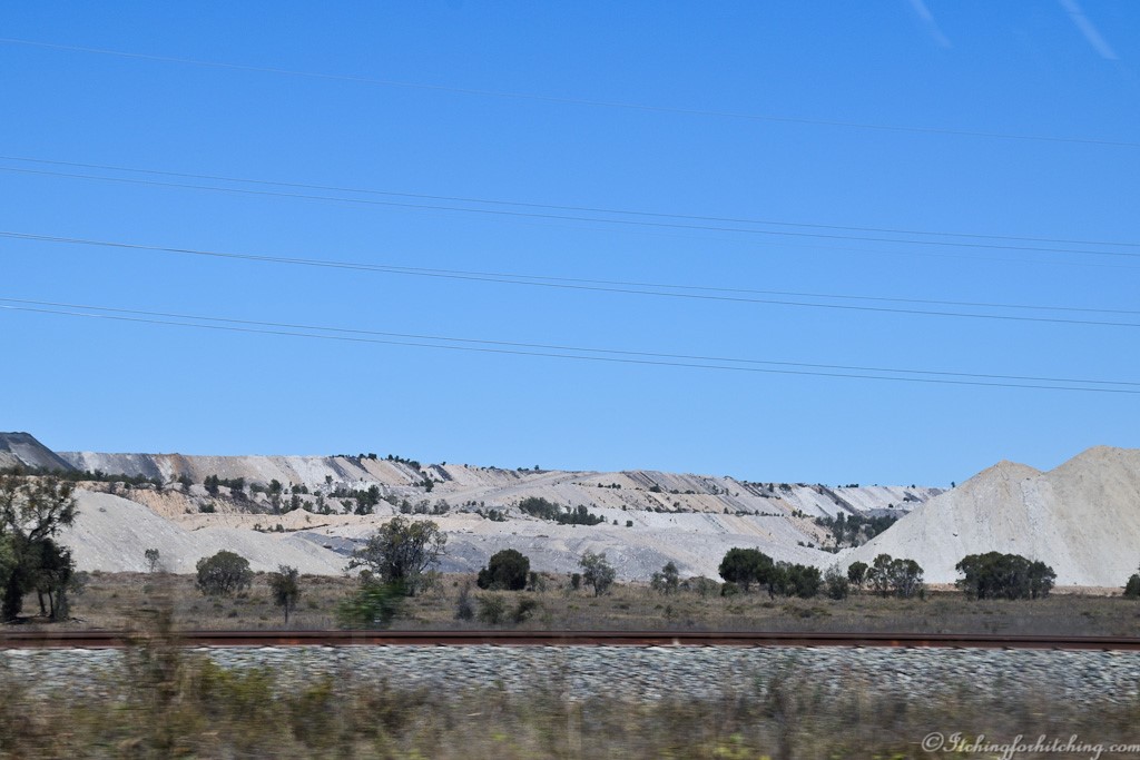 Think Queensland and you may think of swaying palms and warm blue waters. Think again, it’s coal, coal, and more coal. On almost every trip through Qld, we find ourselves crossing coal country. One significant area is the Bowen Basin it is rich in coal and towns like Emerald, Moranbah, Clermont, Moura and many more thrive on the mining industry. Trains transport coal down to the ports of Gladstone / Rockhampton and Mackay to smelters and ships. One such mine, the Dawson at Moura stretches 50kms south to Theodore and heaven knows how far north. “What’s that hill?” It’s still the bloody mine!” And we haven’t even mentioned gold yet, have we?