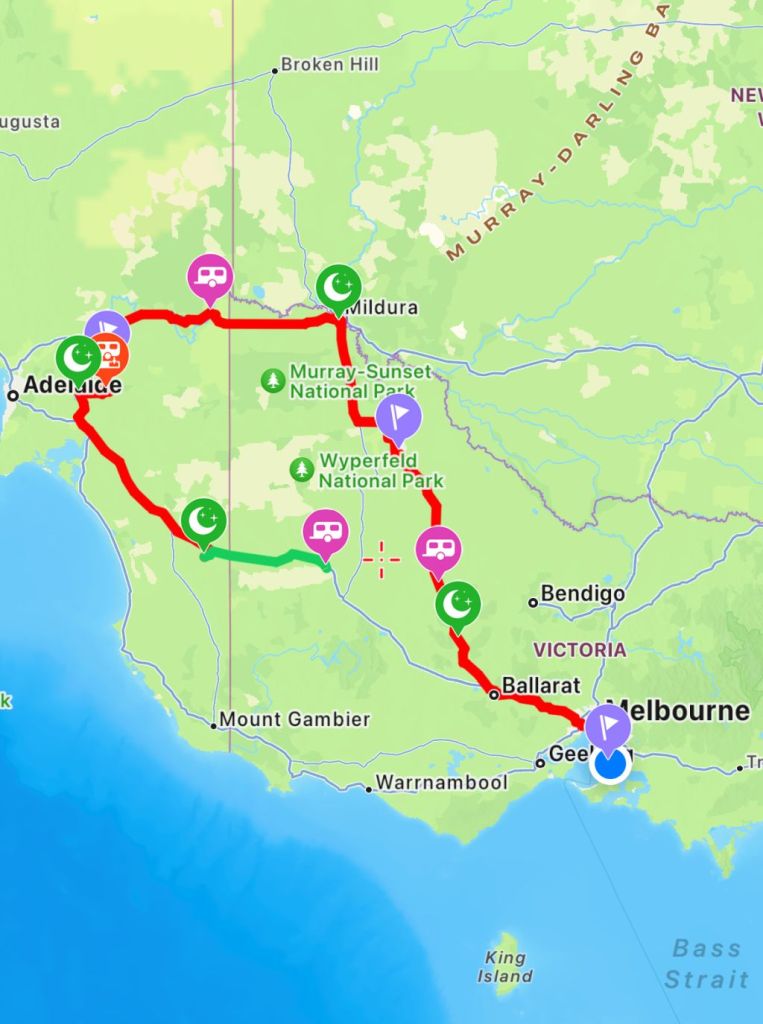 We have a late start but it’s only about 10kms back to the highway at Bordertown. Woody complains when we lose another half hour at the state border time zone change. The GPS is butting in again and wants to leave the highway and do a figure 8 loop about the countryside. Oh, spare us, AI has to be an improvement on this. I’ve now named her Nora as in ignore ‘er.