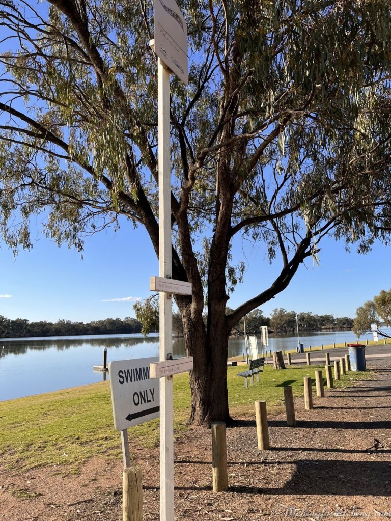 While Woody and Elle top up the water tanks, I marvel at the height of the flood gauge here. Moorook and all these towns really copped it in the 2022 floods when a tremendous amount of water slowly made its way down to the sea.