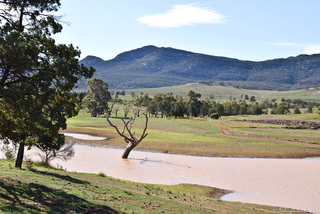VeeWee, the dogs and I take a walk through the park to the unpowered area, where there are some lovely spots for tents and campers. There is a good view of the Bluff, the dam and sheep in the valley.