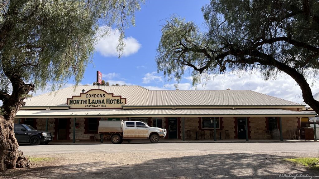 According to the socials the North Laura Hotel has a good reputation so we book a table and stroll up there for dinner. The publican is a man born to his job and quite a character. When we comment about him stocking our favourite wine Calabria Estate and also De Bortoli from Griffith he explains why. You see his de facto’s ex de facto’s de facto used to work for De Bortoli and now he’s working for Calabria Estate, or was it his de facto’s sister’s de facto, oh, I don’t know, but both the wine and the dinner are excellent.