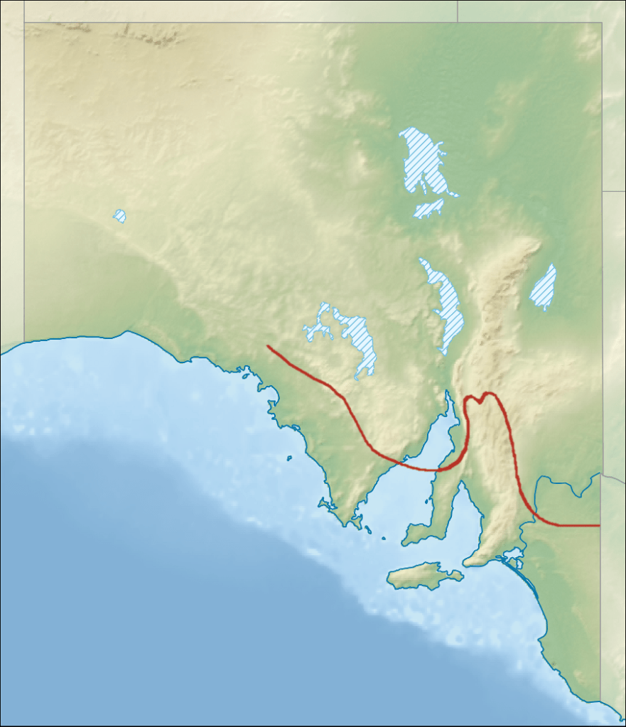 With barely 30 years’ knowledge of this new country, farmers needed reliable information about the climate and growing conditions. In 1865 George Goyder, the then Surveyor-General of the colony, was asked to map the boundary between those areas that received good rainfall and those experiencing drought. After traversing an estimated 3200 km on horseback (not including the Eyre Peninsula) in November 1865, he submitted his report and map to the colonial government on 6 December. The map included a line of demarcation, the areas north of which being those Goyder judged “liable to drought”, with the areas to the south deemed arable. He discouraged farmers from planting crops north of his line, declaring this land suitable only for light grazing. Goyder’s report was based on the information already in his office, supplemented by the observations made during the 1865 journey to observe the effects of drought. He was guided in drawing the line by the changes in vegetation, especially various kinds of saltbush.