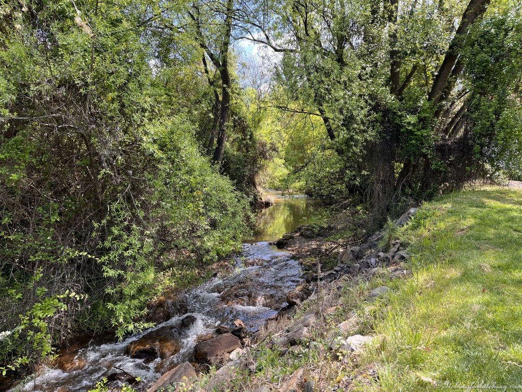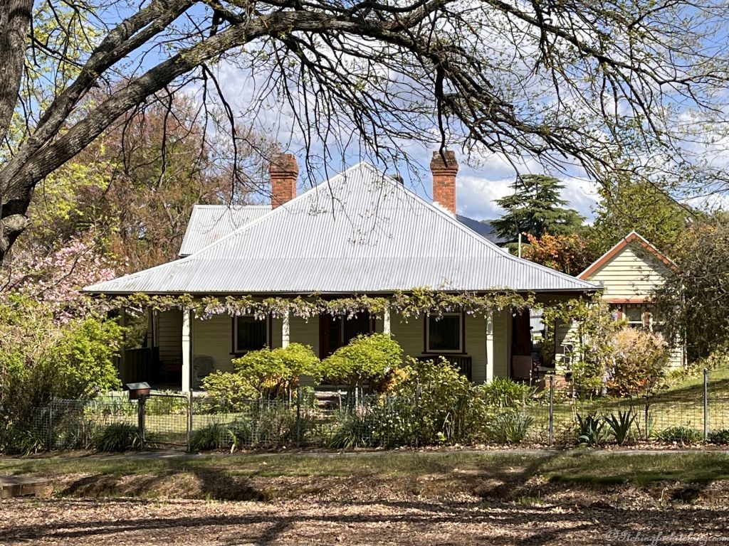 Fueled up with coffee we head north again and take the Great Alpine Road out through Tarrawingee (we must call into The Plough Inn one day) and Beechworth. The trees are bursting into bud and bloom and of course the main street is busy with tourists. It’s only another 20kms on to Yackandandah where we are given pleasant grassy sites backing onto the little Yackandandah Creek (on the opposite side of the park the sites back onto Commissioner’s Creek). Toothless and Mrs Doubtfire are already relaxing in their camp chairs on the riverbank. We all wander about town and pick up Gumtree Pies for lunch. Gumtree Pies are based here in Yack and their Lamb & Mint Pie resides high on my National perpetual pie chart. For pie aficionado’s it has strong similarities to Dunedin’s cultural icon, the Mutton pie without the suet element that drips grease down one’s arms.
