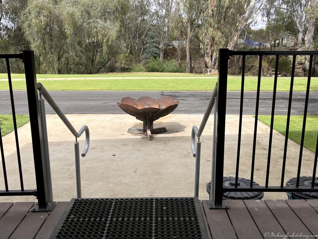 It was a pleasantly warm night with most of the windows and even the door open. It’s already 26 degrees at breakfast. The town fire siren goes off, there must be a grass fire somewhere. Woody has two walks around town before it gets too hot. We laze about like old cats enjoying the heat yet not moving. When Woody says that he doesn’t feel like lunch, my response is that a cold beer would go down well. And you know what? It was perfect.