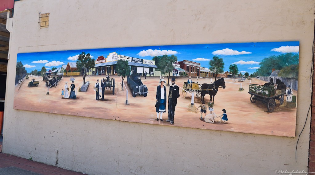 The heat builds and a cool salad is warm before it is devoured. To escape the heat, Toothless, Mrs. Doubtfire and Elle take a drive into Echuca. With VeeWee on board we go in the other direction to Tongala. Once more we are driving through dairy farms. Tongala used to be known for its milk factory and thankfully that is still in operation. The town is dead quiet and we suppose that everyone is indoors or as we soon discover, in the air-conditioned comfort of the public bar at the Tonnie Pub. We walk in to be greeted with a blast of cold air, frosty glasses and a host of Tongalans giving a ‘Tourette’s’ style of commentary to the cricket on the big screen. Obviously it must be an effing good match.