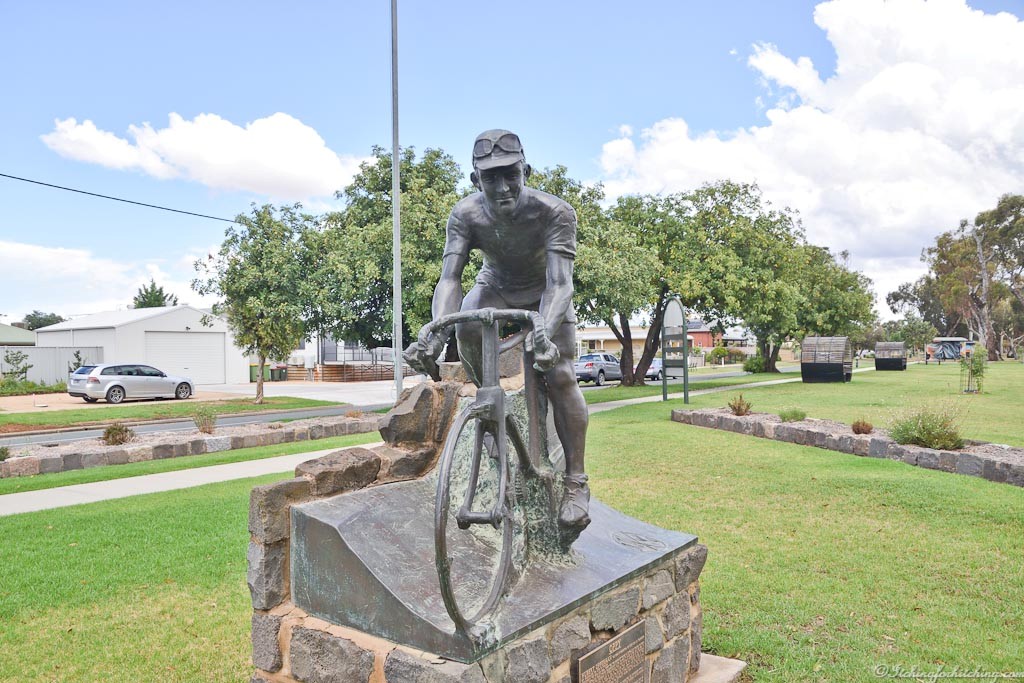 Once again, we sleep soundly through a hot night and the rain begins around 7:00am. Nothing ferocious, just gentle soaking rain to soften the earth. The rest of the crew wander off to the local museum and return raving about how interesting it is. Because it will be closing at 4:00 this afternoon and won’t open again until Thursday we get our skates on and dash over there. Situated in the rooms of the old railway station building, one side is dedicated to local born champion of endurance cycling Sir Hubert Opperman OAM*. The other side of the building contains the private collection of former Puma National Promotions Manager John Forbes OAM**. Covering all sports there is an incredible array of autographed sporting paraphernalia from dozens of the world’s greatest sportspeople.