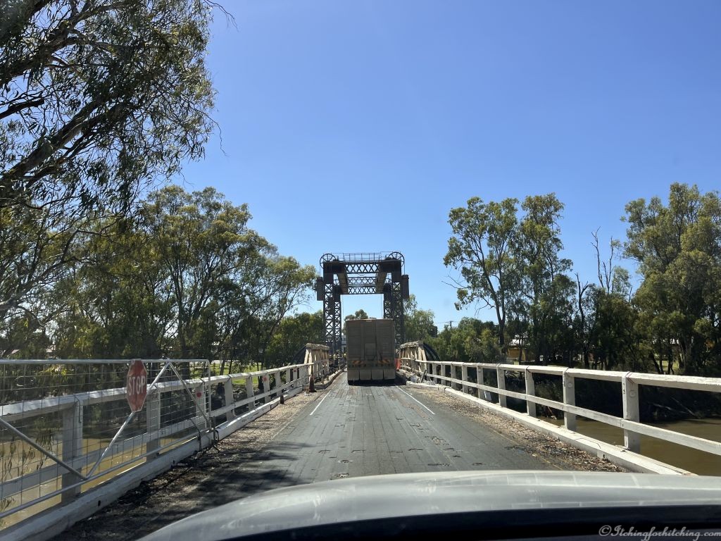 Tooleybuc is a tiny town just over the Murray River on the NSW side. Well to be pedantic NSW ‘owns’ the Murray as the state border is the waterline on the southern side. We have no idea what to expect as we’ve barely taken notice of the name of the town let alone visited. There’s a 5-minute wait in traffic as the old lift up bridge is undergoing much needed repairs (1925 Percy Allan design). Oohing and aahing with delight we continue through town to the Tooleybuc Sporting Club. A golf club and sporting facilities on the banks of the river they offer free camping with toilets and showers. For an extra $20 per night, there’s power as well.