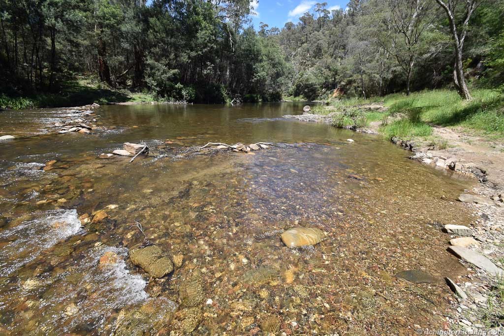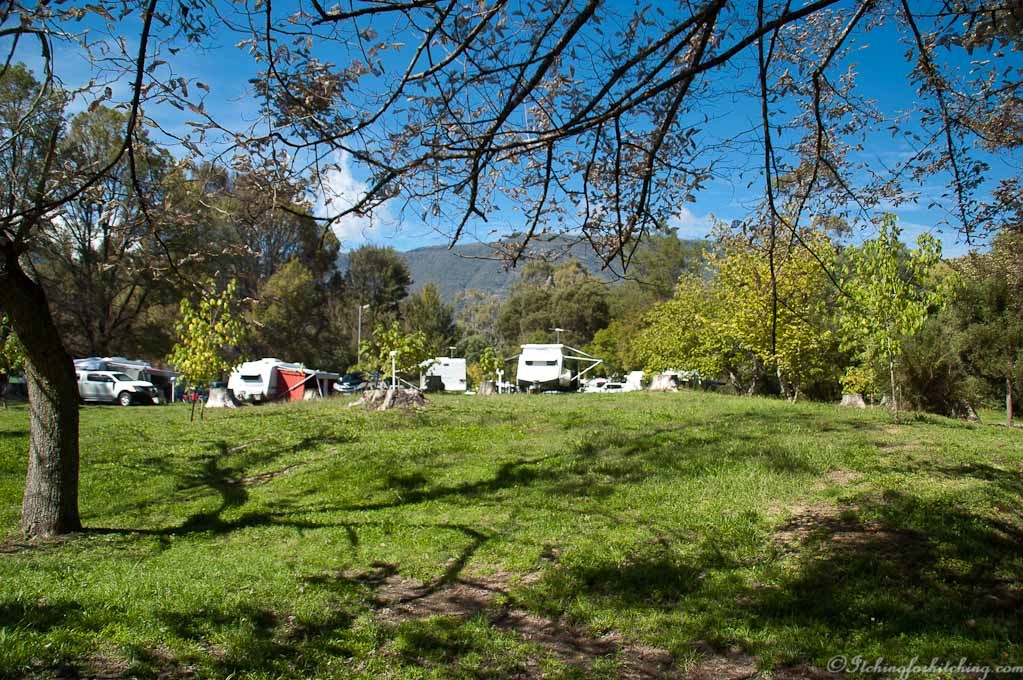 Nug Nug Reserve, up in the Ovens Valley about 10kms south of Myrtleford is a delightful little campground that is managed by the locals. There are flushing toilets, cold showers, power and water from the Buffalo River that borders the camp. There are trout in the river here too.