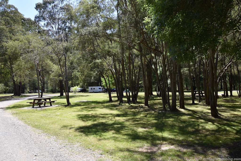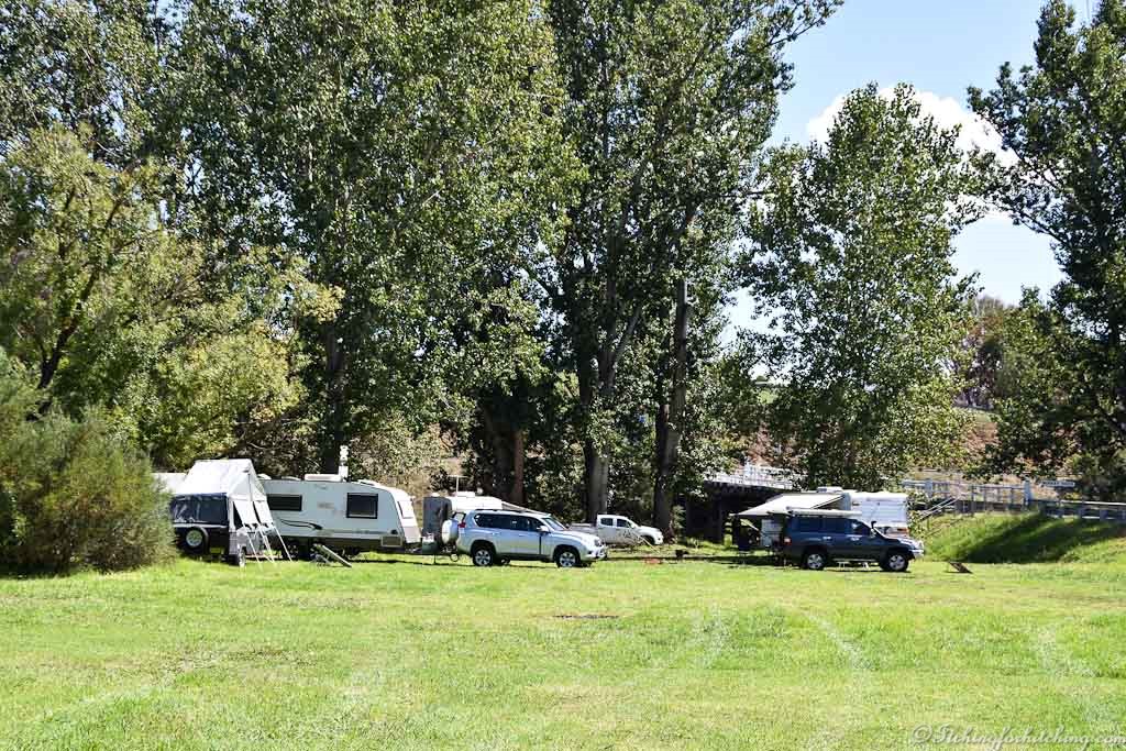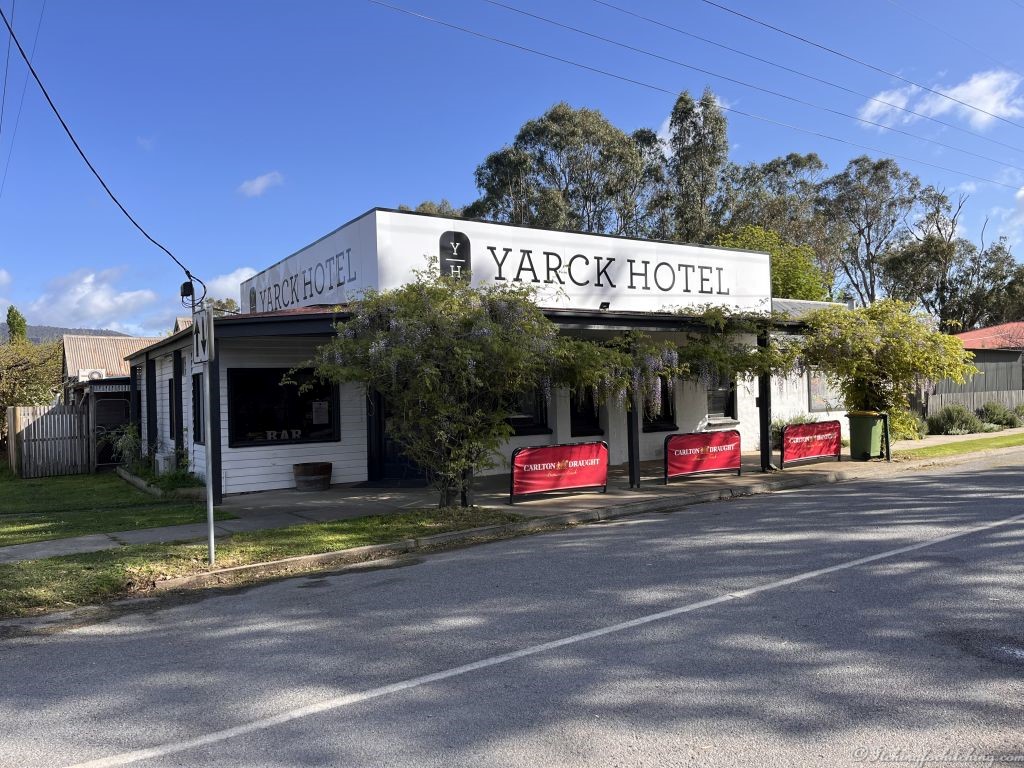 Yarck. Living on the Mornington Peninsula we find that when we’re heading to the northeast of the state it’s much less stressful to avoid Melbourne by peeling off Eastlink, through Ringwood and Chirnside Park then taking Victoria Rd up to Yarra Glen and the B300 to Yea. That way Yea is an easy place to park for a pit stop and pick up those last-minute supplies. Yarck is not much further on from Yea and the old Recreation Reserve provides level grassy camping, has flushing toilets, a ripper pub and a brilliant bakery. And…there are nice views and no traffic noise. What more could one ask of a one-nighter.