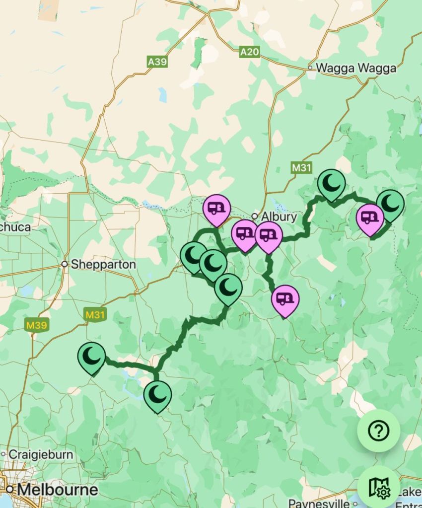 Great spots in Vic’s Northeast (MapSource: WikiCamps)