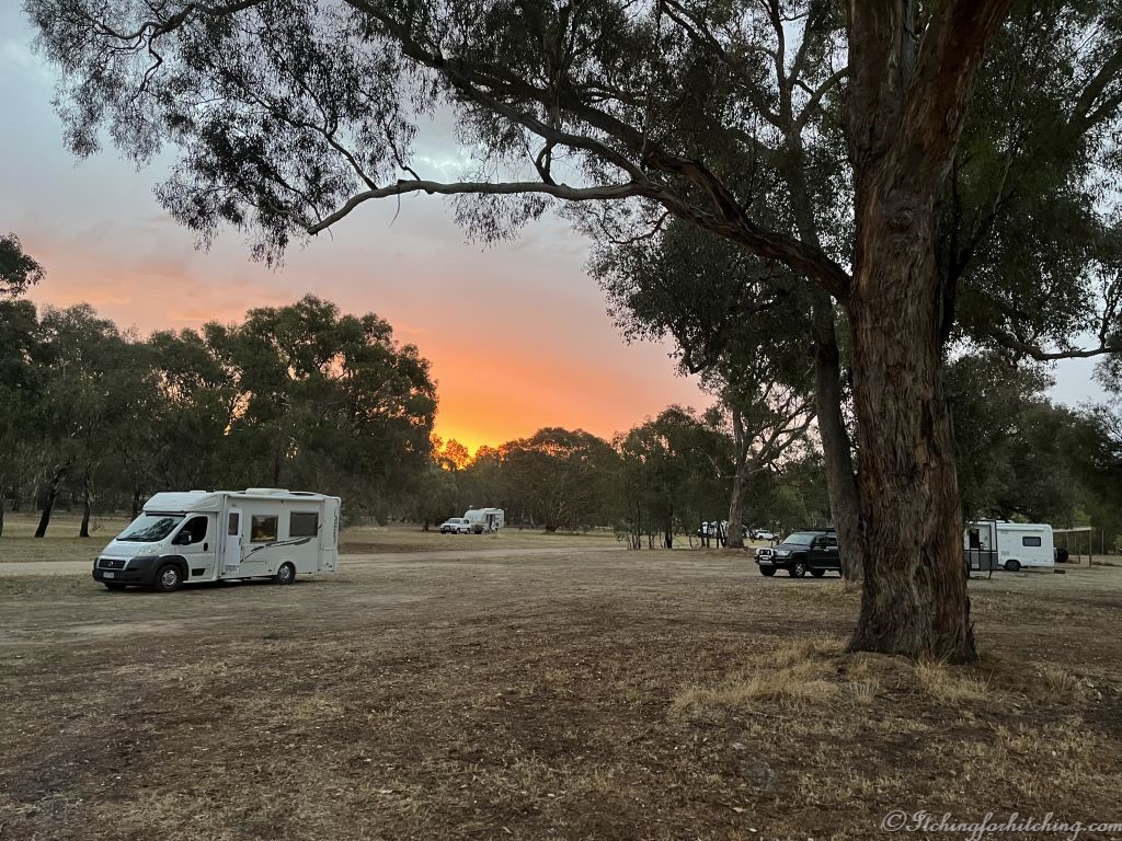 Ayson’s Reserve is on the Campaspe River near Elmore. This used to be the site of the Elmore Field Days before they built a new facility with an airstrip and modern sheds. The reserve has flushing toilets and space for about a hundred vans. It can get busy, but when it’s quiet it is a lovely laid back river camp. Water is available in Elmore.