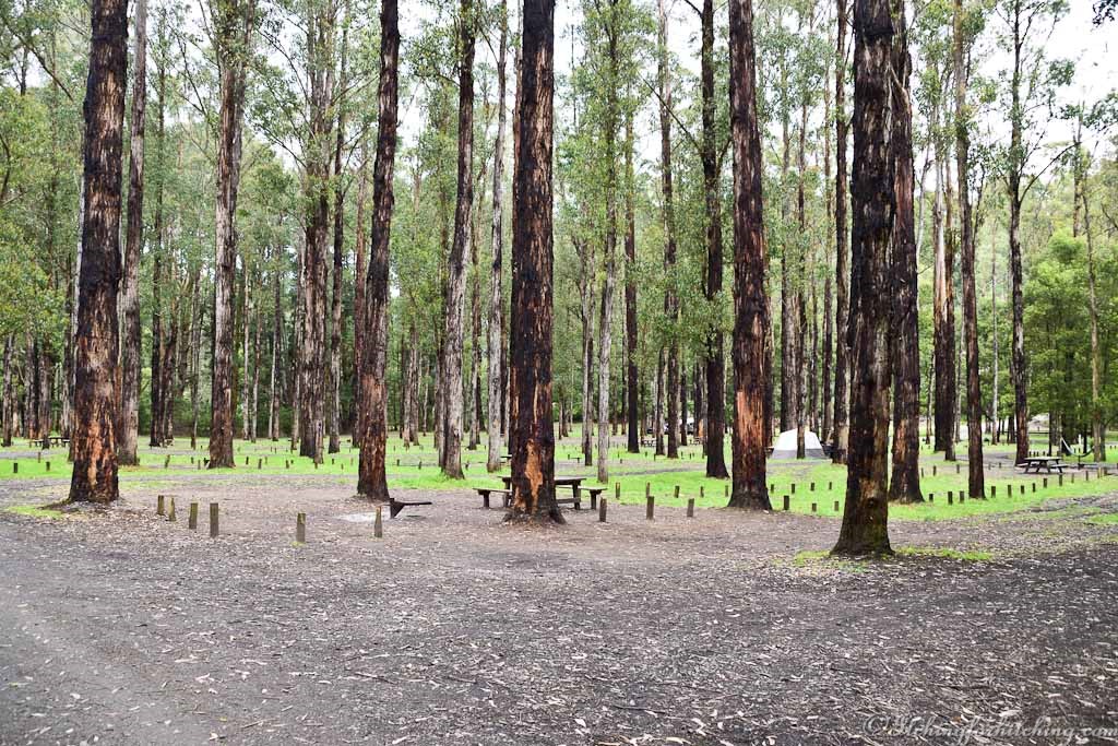 Dando’s campground. From the hamlet of Gellibrand in the Otway Ranges the road corkscrews downwards to the Gellibrand River and a plantation of tall trees. There is plenty of room to camp and fire pits are provided. If I recall the toilets are drops. Turn off the phone, it probably won’t work anyway, don’t set up the tele, just kick back and enjoy a steak and a good red by the fire. This is an exquisite spot for camping during the week and out of bushfire season.