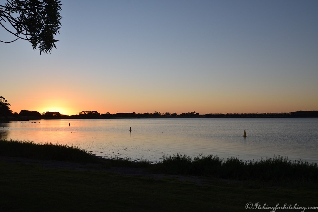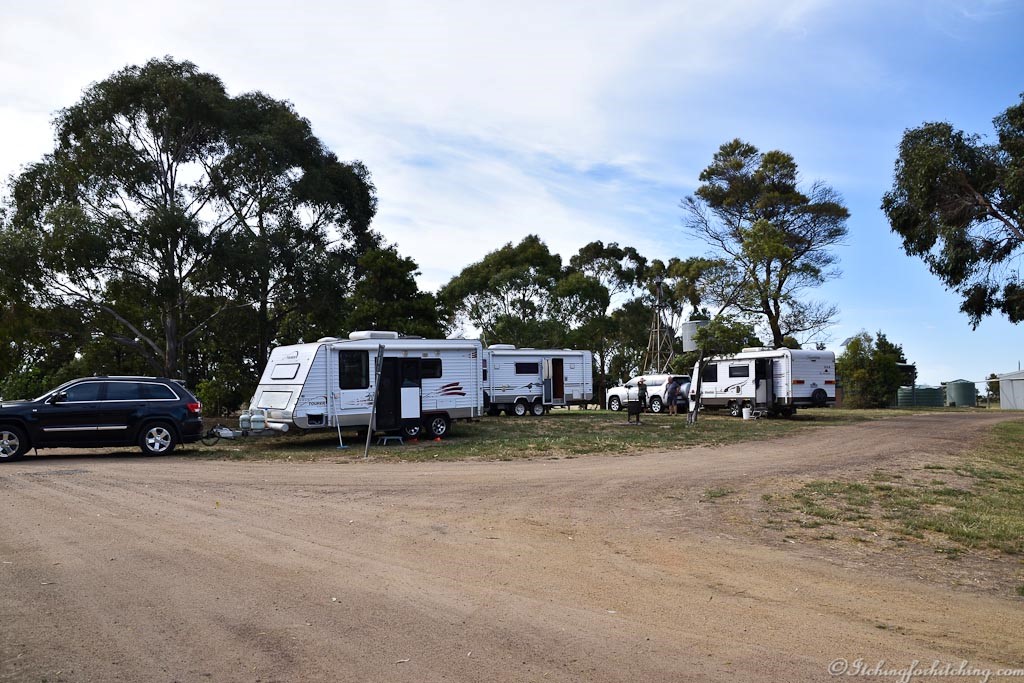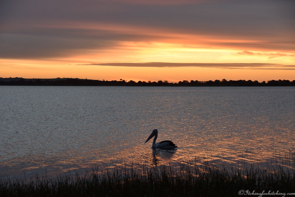 Lake Bolac. This is a huge lake with plenty of space for freedom camping. You’ll learn about the district when the ranger drops by for a donation. There’s a funny little triangular camp kitchen and a well-built timber amenities block. We were lucky enough to be there when the neighbouring wheat field was being crop dusted.