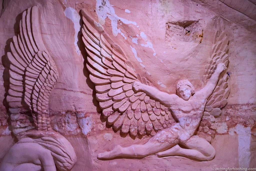 Lightning Ridge, Coober Pedy, White Cliffs, Yowah, there’s something about opal mining that screams quirkiness. Lightning Ridge though must be the quirkiest of them all. There is so much to see and do in this town.The Opal Caravan Park is excellent and a pleasant park just to kick back and relax, you need to allow yourself plenty of time here. When you’re ready to explore, there are the car door tours where you follow painted car doors to the sights in each part of town, the best of which is Amigo’s Castle. For a completely different experience Chambers of the Black Hand is a mine that has become an art gallery thanks to its talented owner who has carved some beautiful works from the stone walls. Dotted around town and in his gallery, you’ll see the unmistakable paintings by outback artist John Murray. And when you’re done with sightseeing there’s always a relaxing soak to be had in the hot spring bore just up the road from the Opal Caravan Park.