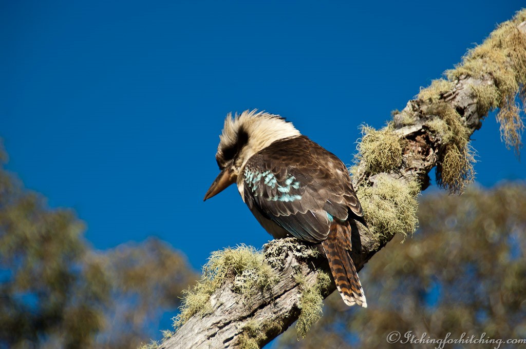 Note: We stayed at the Bellingen Showgrounds a while back. I wanted to practise my ukulele and Woody insisted that I go over to the Poultry Pavilion. At least I had an audience, one butcher bird with an unusual taste in music.