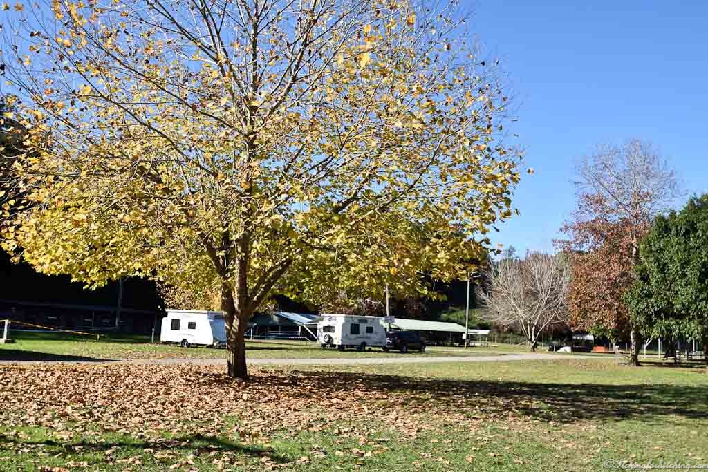 The Waterfall Way is a great scenic drive, and yes there are waterfalls beside the road. It’s one of the best and easiest roads for traversing the Great Dividing Range and it can be easily managed towing the caravan. In fact, my sister in law’s father’s ashes were scattered at one of the falls. There’s nothing wrong with our mob, or is there?
