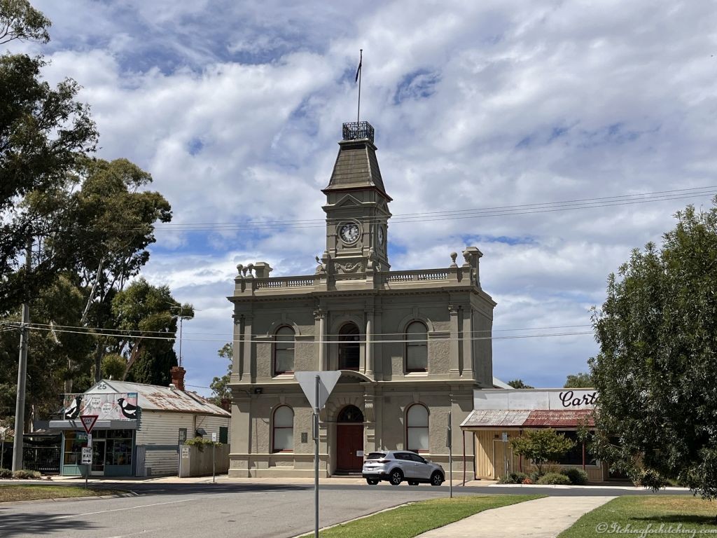 We’re in no hurry so we stop in Yea for lunch and a stroll. Marmalade café is a favourite probably because it is in an interesting old timber store with a very high ceiling and an intriguing cellar below. There’s a quiet courtyard out the back with shady trees that’s perfect for lunch. We munch on Lamb and Rosemary pies. The founders of this town had the forethought to divide the main street with a grove of trees and pleasant lawns, which makes it safer and more inviting. Yea is the junction of the Melba Highway and the Midland Highway (B300) and because of this it is always busy and supports 4 pubs.