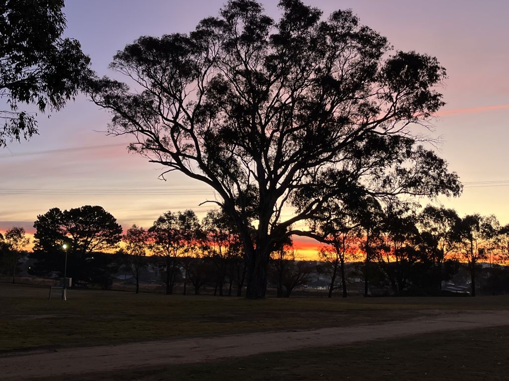 The water that drained out of our tanks last night is now frozen on the ground. Over in those new corrugated iron bathrooms there are icicles hanging from the showerheads, so without our own water we write off the chance of an early start. We have a slow breakfast waiting for the tap outside to thaw so that we can get some water to heat to wash the dishes. Eventually, after much tip toeing across the frosty lawn the showers are ready to provide a good hot scrub. Our 80 year old neighbour who’s been soaking up the warm sun while waiting for the water, tells us that they lost their Riverina farm in the last drought, she and her son are heading north for the winter to give him a break from severe chest problems.