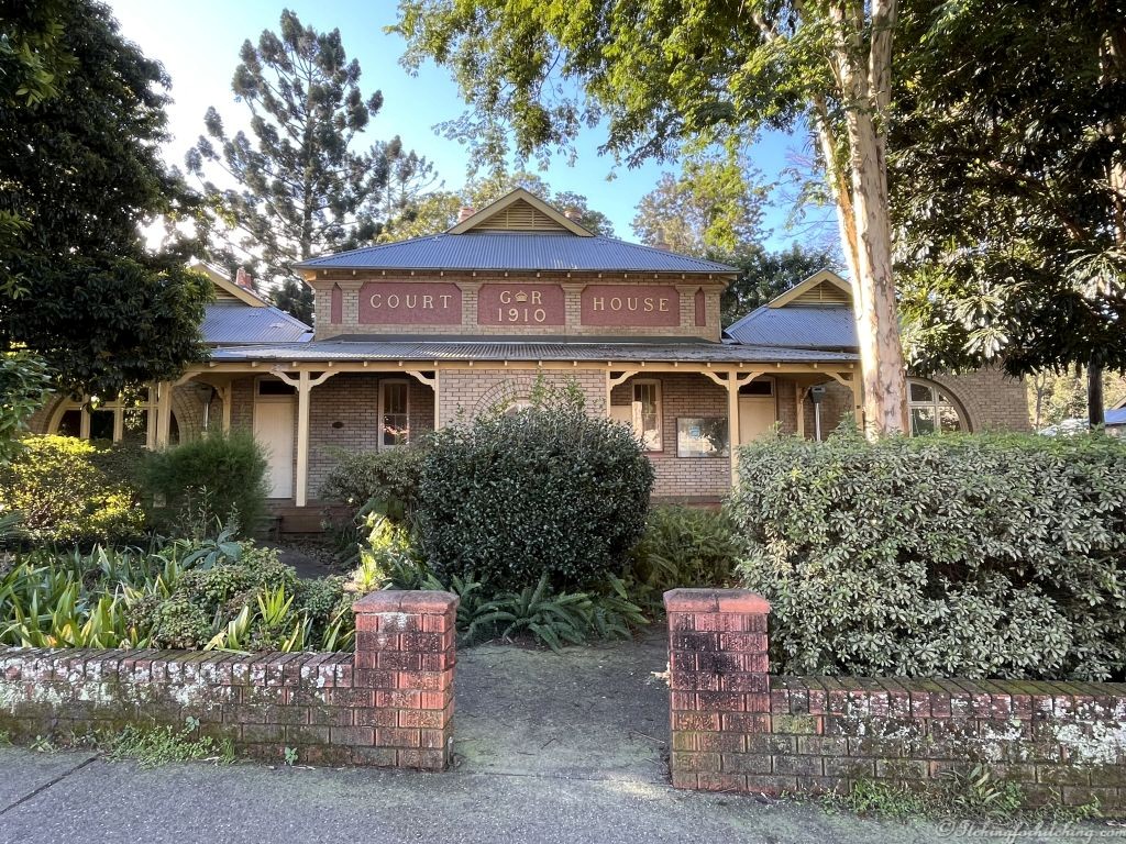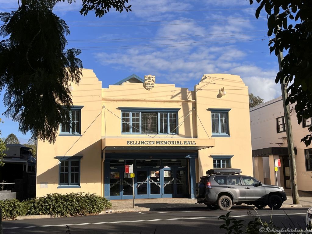 After lunch we hit the footpaths again, Woody watches a boy catching an eel and I sit under an enormous Moreton Bay Fig in the park and sketch the Town Hall. The diameter of the fig must be equal to half the length of our caravan. This is also a chance to photograph a few other buildings around town. Bellingen started out as a cedar cutting town where logs were floated down the river. Many of the buildings that survive were designed and built by London born George Moore. As no bricks were available at the time he made his own from the river mud. George arrived here in 1881 and was still building in the area when he died in 1917*. To my mind he left a wonderful legacy and it’s a credit to both his ability and the local community to have kept so many of his buildings.