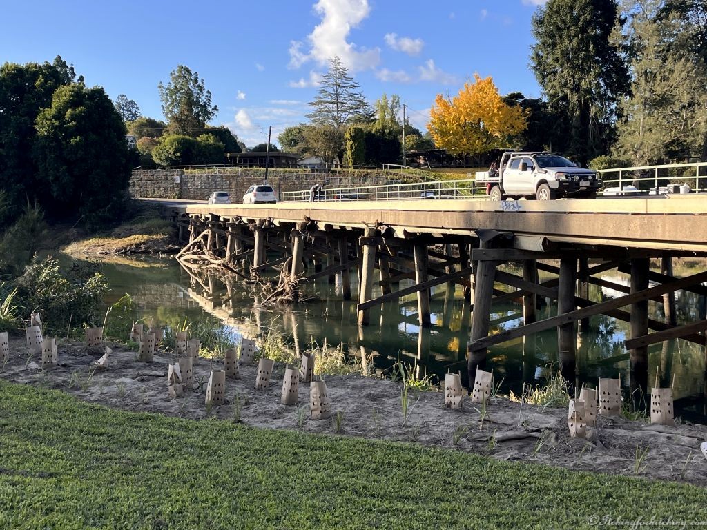 Down by the Bellinger River people are having picnics on the bank even though it is still a little muddy from the recent flood. The amount of tree trunks caught in the bridge supports is a silent reminder.