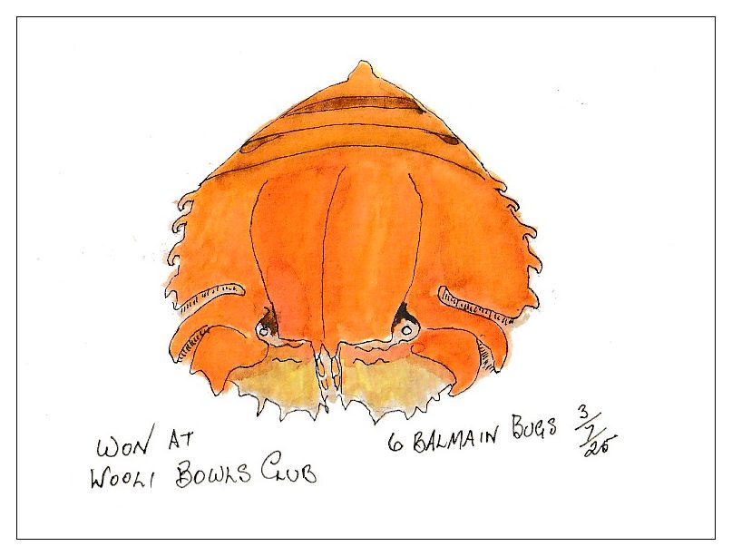 Tonight is Raffle night at the bowls club (aka the Bowlo on the east coast) so we drive over for happy hour and try our luck. It’s a very nice club with river views and tonight it’s busy as the beers are cheap. We buy our raffle tickets and soak up the atmosphere. The pool table is in use, the umpteen screens are showing horse racing, Keno, and the Sydney news of the storm damage that missed us. At 6:00pm happy hour ends, and the raffles are drawn. Woody is convinced that we’ll win something, yeah right. Hey! That’s us, we’ve won half a dozen Balmain Bugs, our favourite, and the barman will hold them in the fridge until we’ve finished dinner.