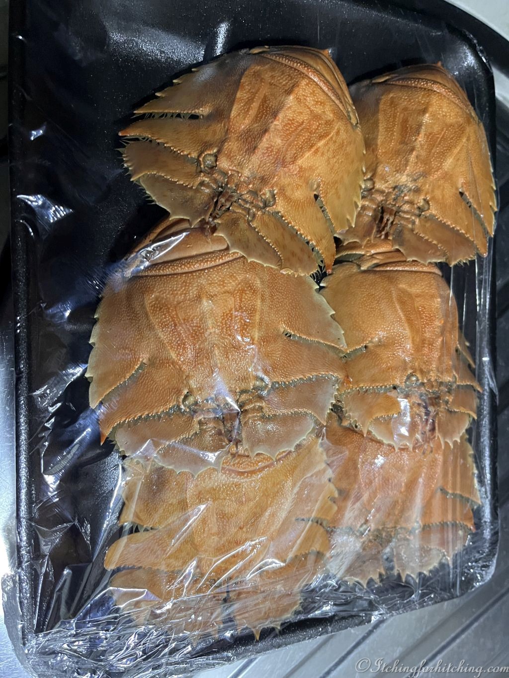 We have two kinds Balmain Bugs and Moreton Bay Bugs. In the shell they’re about the size of a hand, but there’s not much meat in them as they are mostly head. We got enough meat from the tails for two generous sandwiches. The taste is about halfway between a prawn and a lobster. They look rather prehistoric don’t they? I should explain the names, Balmain is a Harbourside suburb of Sydney and Moreton Bay is the location of Brisbane. They made a delicious lunch.