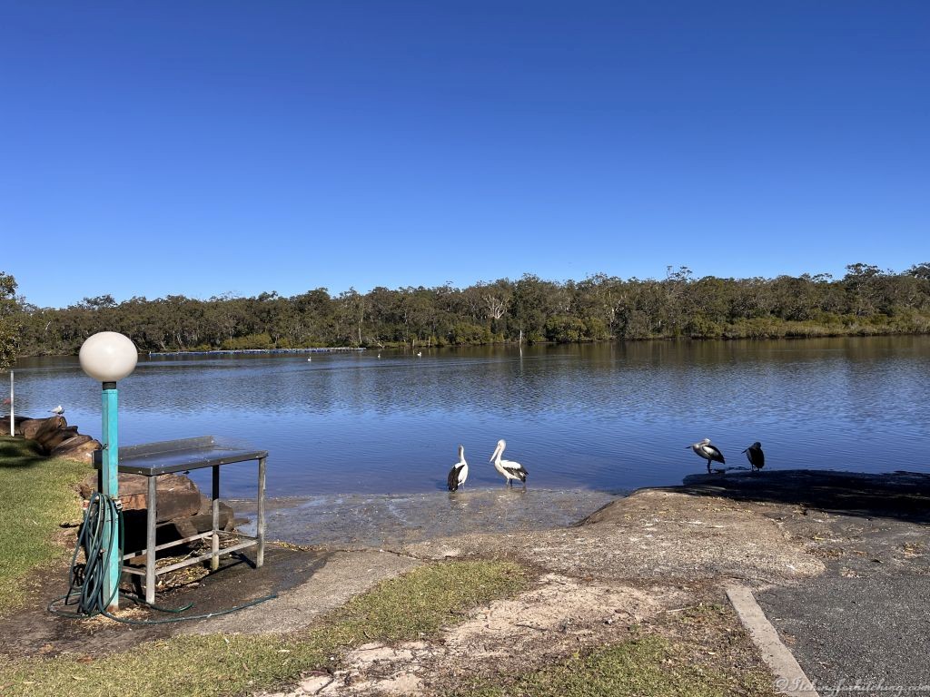We have a relaxing day reading in the sun, trying not to finish this book and walking. The park is peacefully quiet but not for long. New South Wales school holidays have just started and by late afternoon the families start rolling in. It’s fascinating to watch the various camper trailers being unfolded and set up. And even more intriguing as to how many small bicycles they can carry.