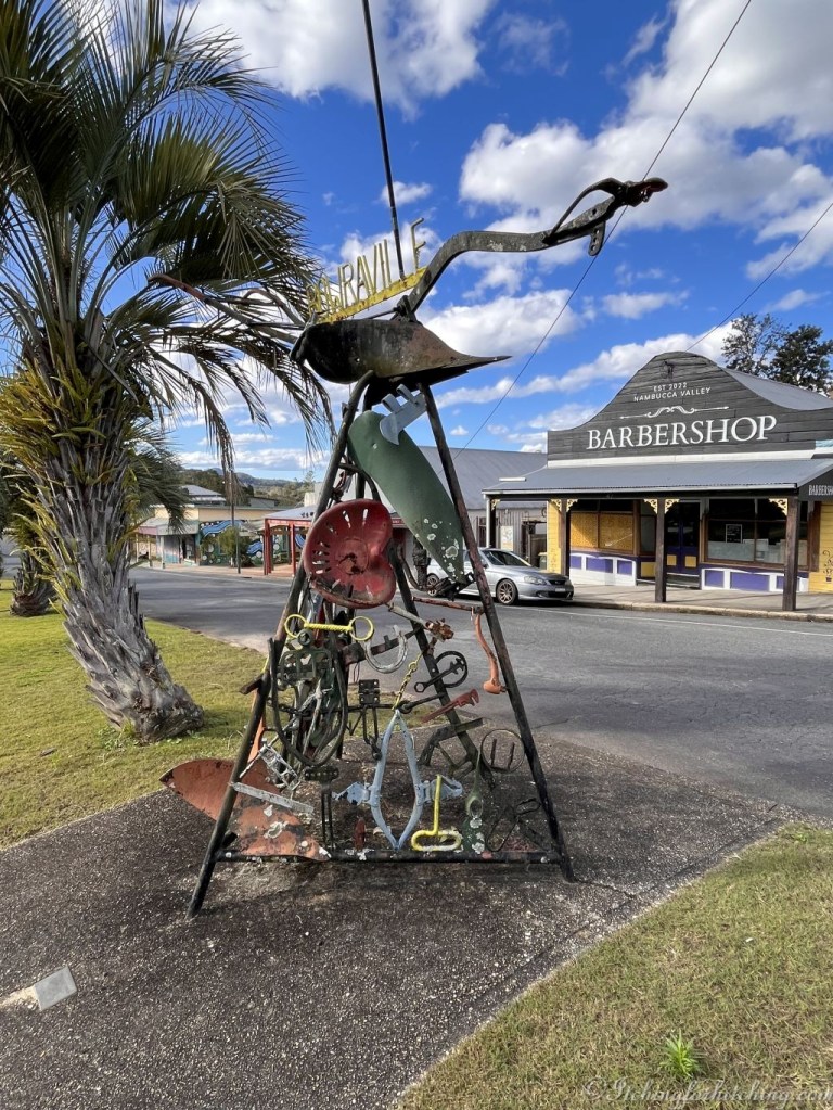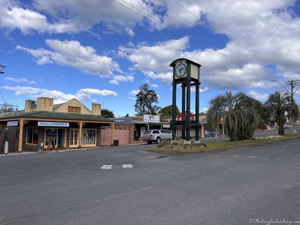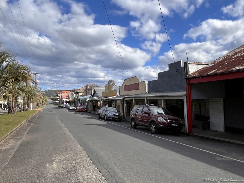 Being a Sunday there are few people about, though we can hear distant music. The main street is colourful, with timber shops and wide verandas. Although the shops have been surpassed by those of the larger towns, the pub and supermarket are trading, as are several halls and an art deco theatre. Going by the number of posters advertising local productions and that distant music, I’d guess that there’s a lively arts community here. There are two museums in town, but we miss out as both are closed today.