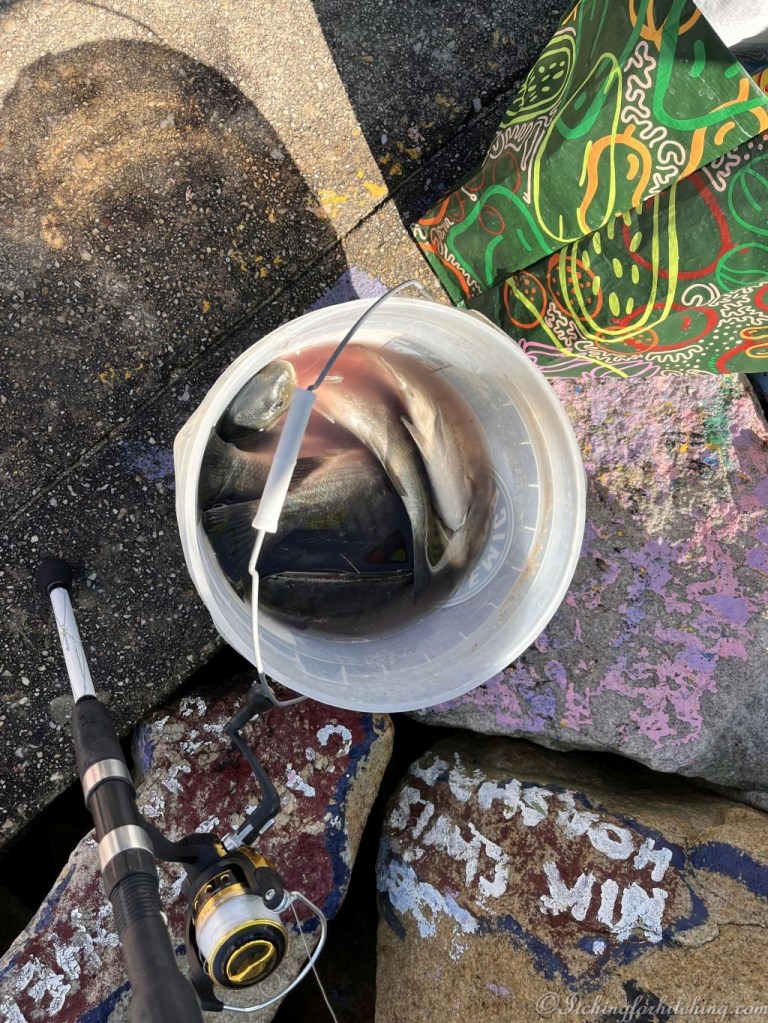 Walking over to Shelly Beach, it’s a bright sunny morning, there’s a high tide, and people are enjoying a swim. While the fellas do their thing, we girls go bush, exploring the tracks around Wellington Beach and along the V Wall. As always, people are fishing, and one chap shows us his bucket of Luderick or Black fish explaining that they are a good eating fish.