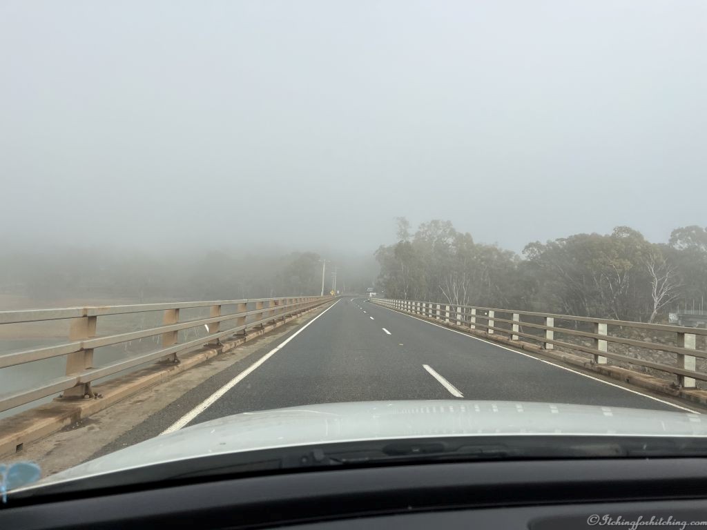 We strike wispy fog patches around the Eildon weir area and far too many dead wombats. Has there been a drunken wombat party overnight?