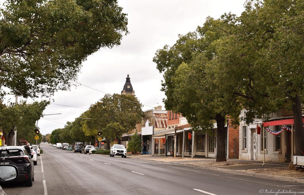 We stop in Dunolly for a walk and a look around. Being Sunday morning things are very quiet. A few of the empty shops now house artistic pursuits and the town is a little more colourful than when we were last here. The large metal detector shop is still here and there’s no doubt that these things are popular. This area still yields gold for the keenest of prospectors and of course the Welcome Stranger* nugget was found at nearby Moliagul.