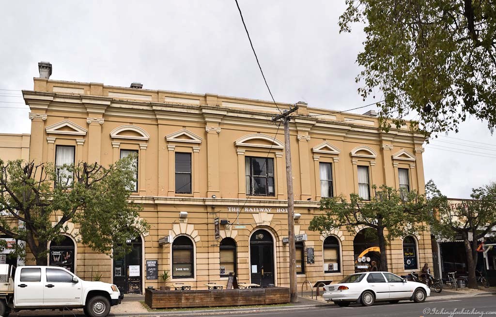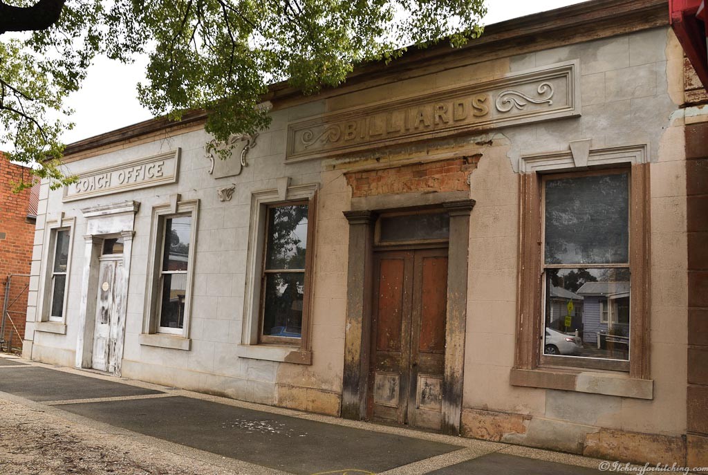 The road takes us through Carisbrook. The paddocks are dotted with the decaying ruins of old sheds and once grand homes are being overtaken by untended gardens. It won’t be long before the only sign that anyone ever lived on these properties will be the pairs of ubiquitous Canary Island date palms. Lake Laancoorie is a little low, but the fields of canola are starting to show their colours and should be a dazzling gold in another week. Carisbrook is a town that we haven’t really taken notice of before, and there are plenty of interesting old buildings.