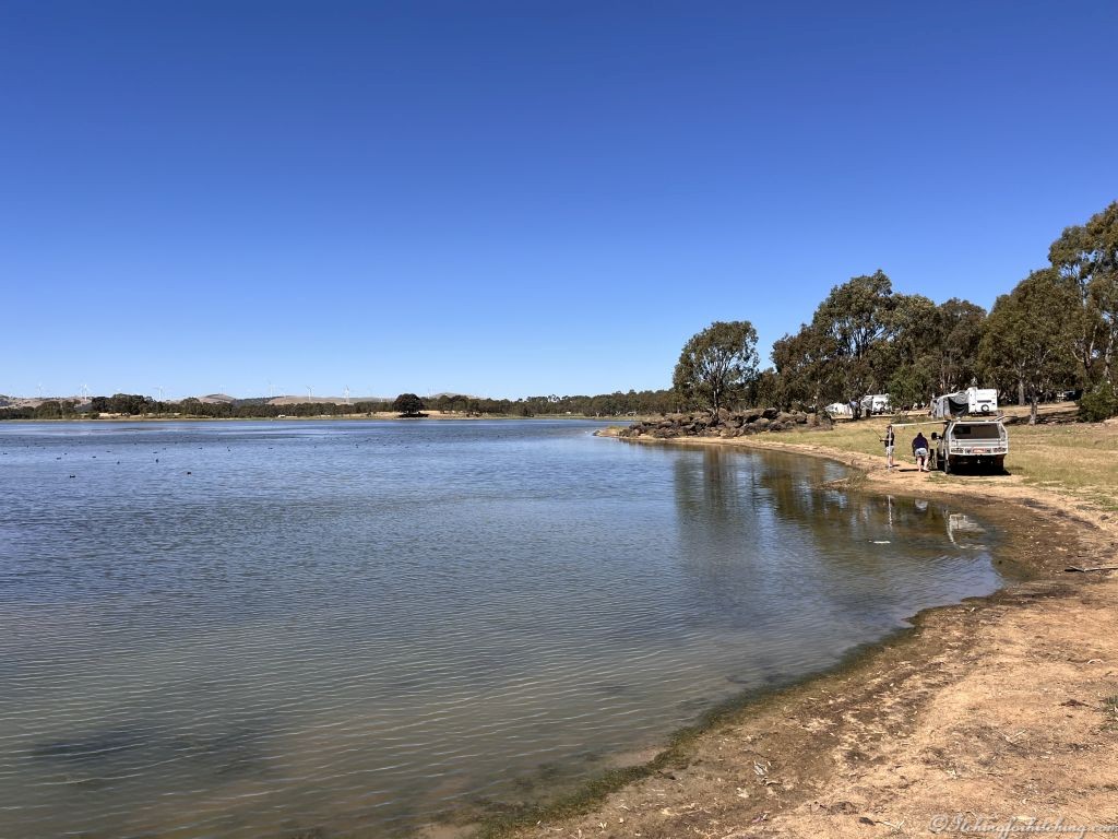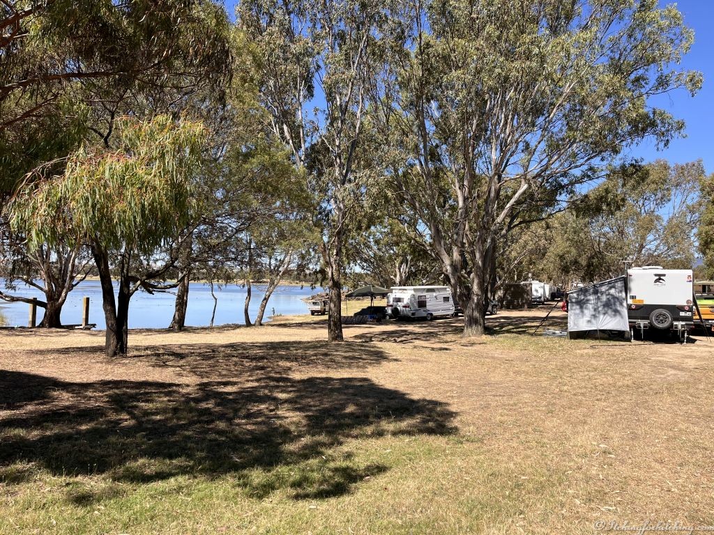 On the eastern outskirts of town there is a free camp that everyone seems to have stayed at except us. But I’ll tell you anyway. It’s Green Hill Lake and we’ve heard so much about it that we wrongly assumed that it would be just an overnighter. We find a spacious campground on a large lake with probably 50 caravans set up for the holidays and there’s room for many more. Folks are fishing and lazing in the sun, yep, it’s a good spot for a fishing holiday and there are flushing toilets and a dump point.