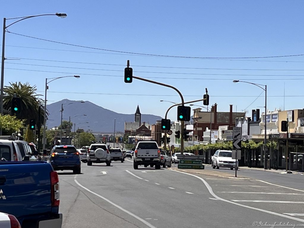 After our broken sleep we have a lazy morning before taking a walk along Ararat’s main street. It’s a wide street with a sweeping bend that opens to a fine view of the extinct volcano Mt Langi Ghiran. Like so many other towns Ararat was founded on gold and there are many grand buildings, I’m snapping like a woman possessed. These will be great to draw later.