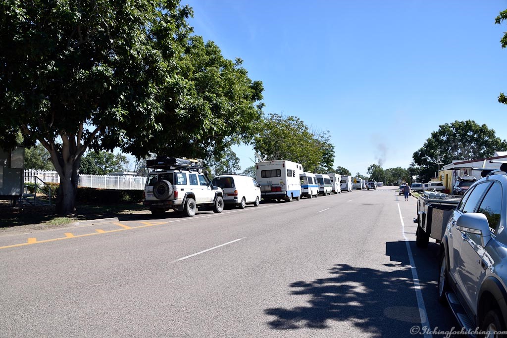 “The people of Home Hill in Queensland allow RV’s to park for free for 48 hours on the street parallel to the highway and right in the heart of town. Is it any wonder that this town can still support three pubs, there are 67 RV’s in for the night when we visit. On the Main Street there are two supermarkets and on our street a laundromat, the Information Centre, an amenities block which provides toilets, hot showers, a camp kitchen and tables and chairs.”