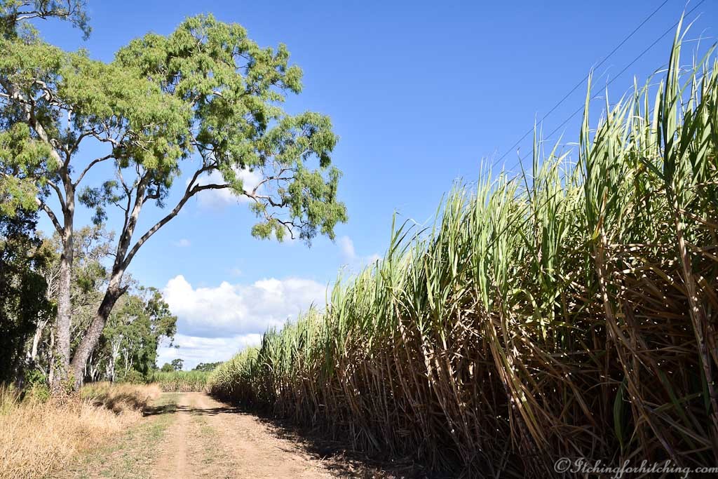 The farm is on Waterview Road, so named as it skirts a long lagoon. Greg’s farm stay is on mowed lawns under shady mango trees and overlooking the lagoon. Behind us and up the hill is Greg’s farm and hundreds of acres of sugar cane. Across the lagoon is a vista of sugar cane. Our hosts are Greg the farmer and the resident camp managers. There are no amenities so campers must be self-contained, but there is power and water and 25 picturesque sites. There is a dump point, bins for our cans and bottles and happy chooks to feed our scraps to. Once we are set up our site is ours until we feel like moving on. This is Grey Nomad heaven.