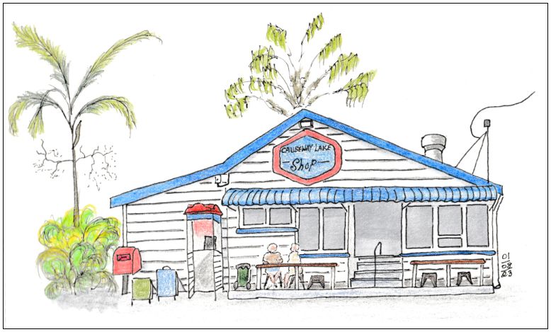 When the coastal road, the Scenic Highway was built a causeway was constructed over Mulambin Creek creating a tidal lake. This is a great spot for fishing, both on the lake and at the turn of the tide below the causeway. There are a number of homes, a small caravan park and an old- fashioned fish n chip shop.