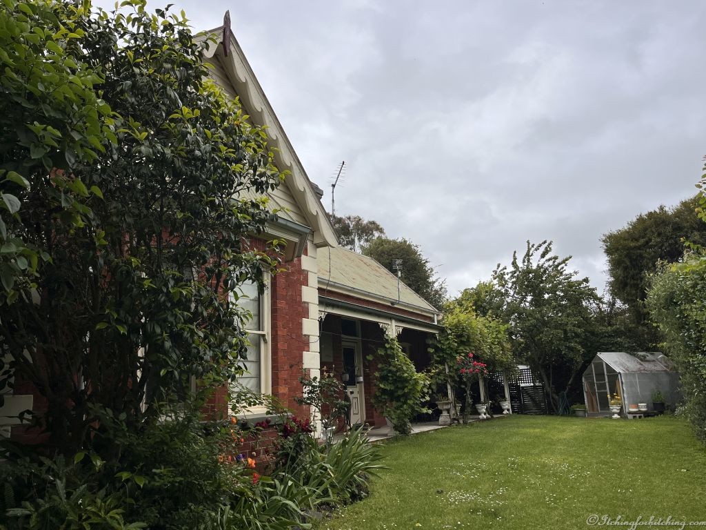 The Yarram Holiday Park is in a pretty garden setting. The manager’s residence is a charming old home that may have a bit of history to it. It feels as though we are camped in their garden. Every site is bordered by plants, hedges or trees many being old varieties. Gosh, I’d love to nick a few cuttings. Channelling Nanna*, I’m sure she would have. There’s an indoor heated swimming pool, an indoor camp kitchen and a large log cabin style outdoor camp kitchen with generous heating to make it a pleasant place for happy hour.