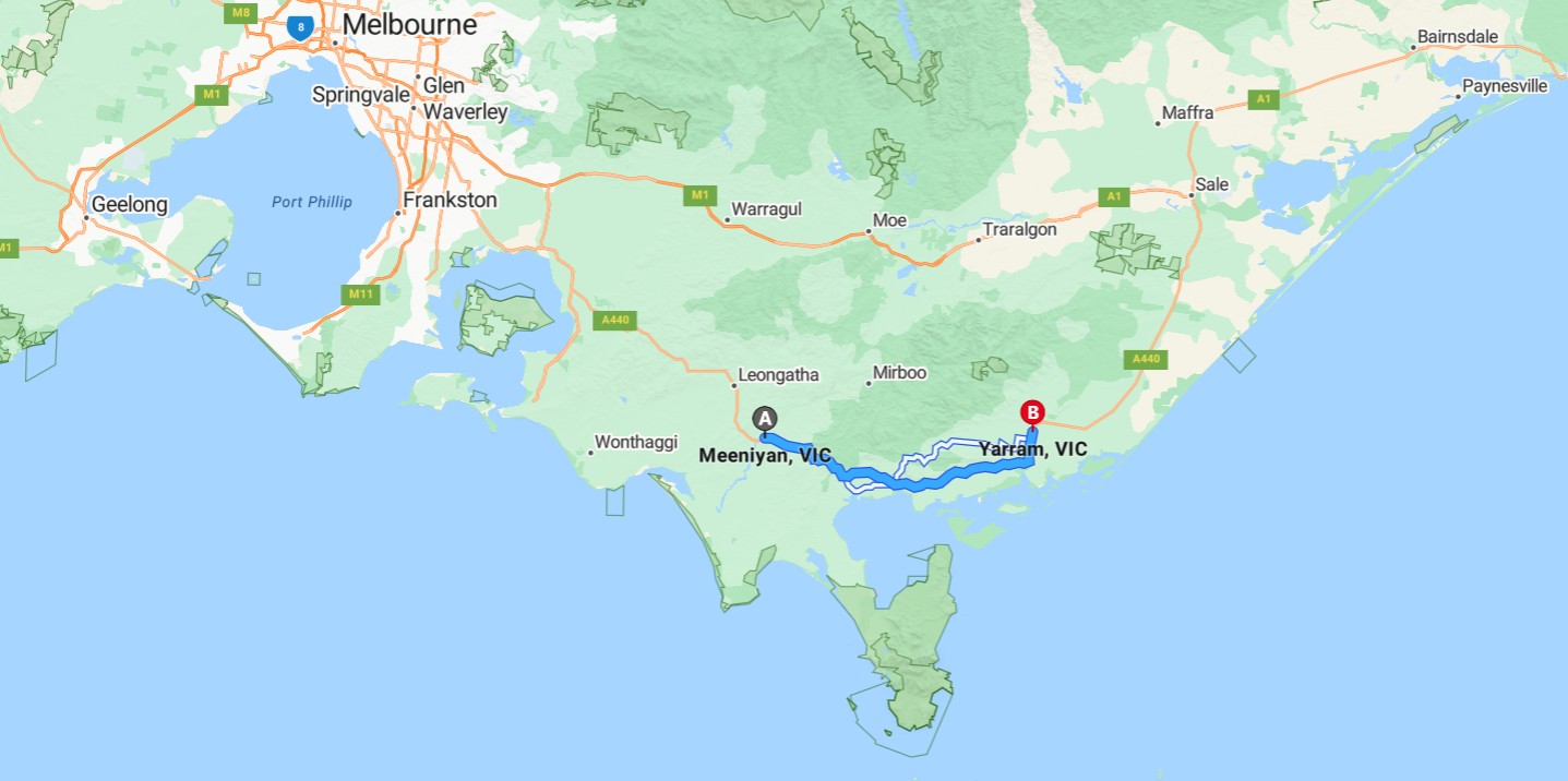 Day 3 Monday 24/11/2025 Meeniyan to Yarram, 14 – 18 more drizzle