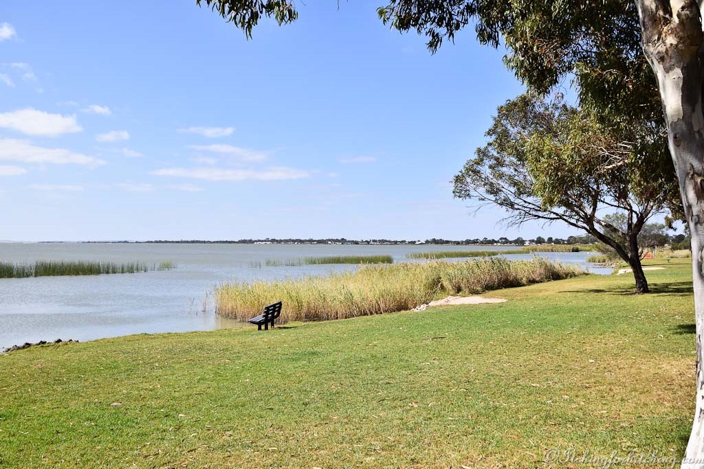 Meningie is on Lake Albert close to the mouth of the Murray. There is a pleasant caravan park right on the lake shore, so you don’t have to go far to bait your hook. This is a laid back holiday spot with loads of bird life.